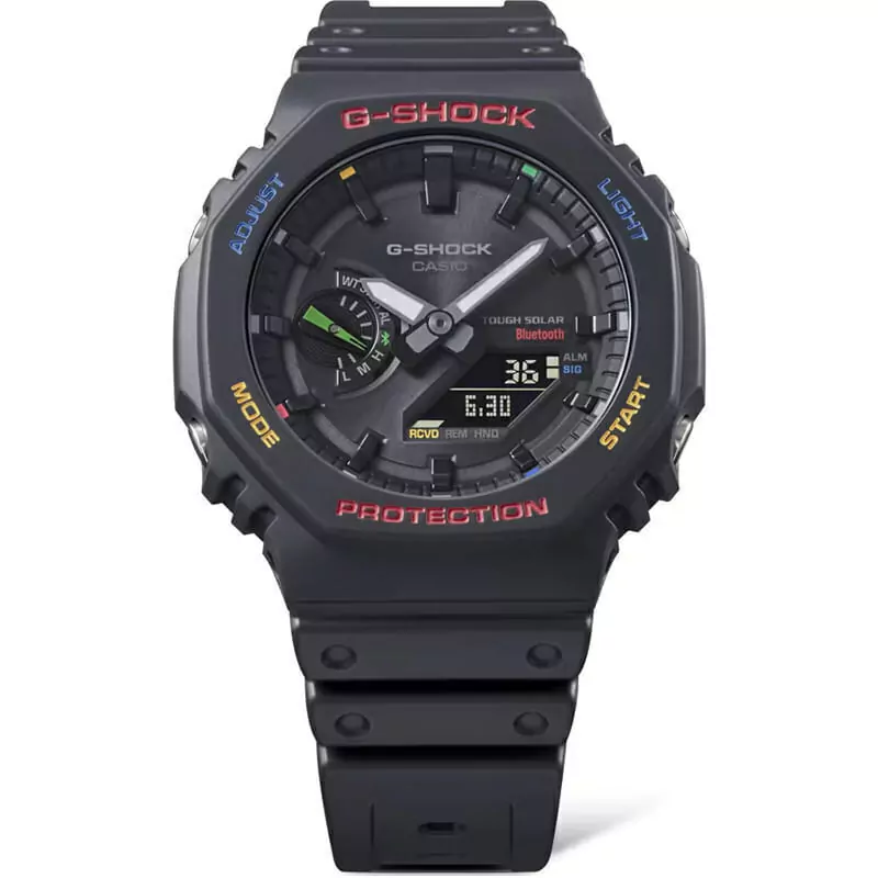 Estructura Carbon Core Guard. Bluetooth (Ajuste automático de la hora, ajustes sencillos del reloj, hora mundial de aproximadamente 300 ciudades, recordatorio de citas, buscador de teléfono). TOUGH SOLAR. Caja de resina con carbono. Resistente a impactos. Resistente al agua 200m. Luz LED doble - Neobrite. Hora mundial (48 ciudades). Cronómetro de 1/100 segundos. Temporizador. 5 alarmas diarias. Calendario automático completo (hasta el año 2099). Tamaño de la caja: 48.5 _ 45.4 _ 11.9 mm. Garantía oficial 2 años.