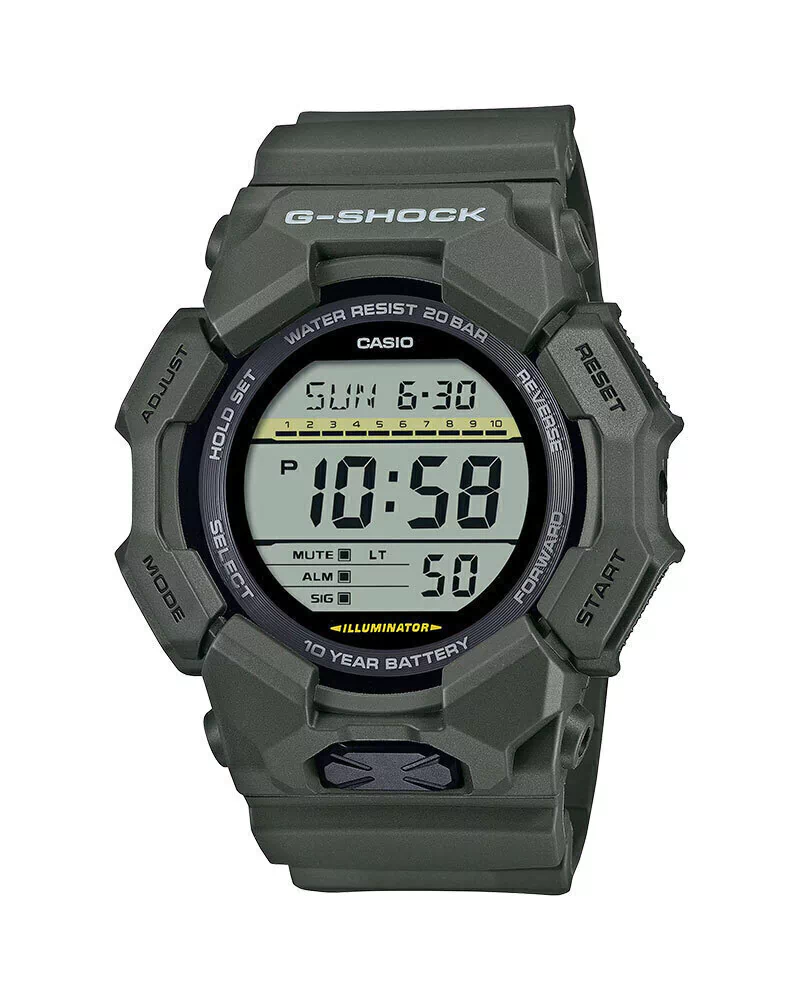 PRIMER G-SHOCK CON PILA DE 10 AÑOS DE DURACIÓN. El GD-010 digital tiene funciones prácticas como hora mundial y cronómetro, además de luz LED de alta luminosidad, a la que se puede acceder fácilmente con el gran botón que hay en la parte delantera de la caja. Fabricado con resina de base biológica y equipado con una batería que dura 10 años, este G-SHOCK es ideal si querés reducir el impacto medioambiental. Estructura Carbon Core Guard. Resistente a los impactos. Resistente al agua 200m. Timer de cuenta regresiva. 5 alarmas diarias. Tamaño del reloj: 55,1 × 51,9 × 17,5 mm. Garantía oficial 2 años. RETIRALO GRATIS en los puntos de Unicenter y Centro. Envío a domicilio gratis desde $160000.