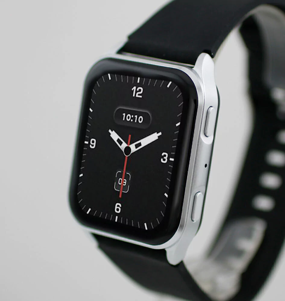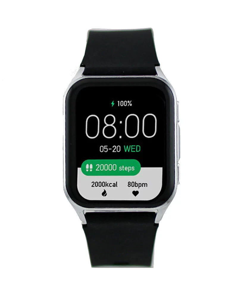 Reloj smart, caja de metal con malla de silicona.